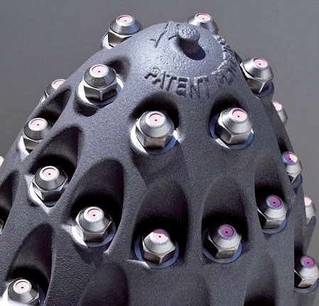 - Spezialdüsen mit Keramikeinsätzen erzeugen einen fein zerstäubten Wassernebel, welcher die Staubpartikel an der Quelle bindet und die Ausbreitung des Staubes in die Umgebungsluft verhindert.